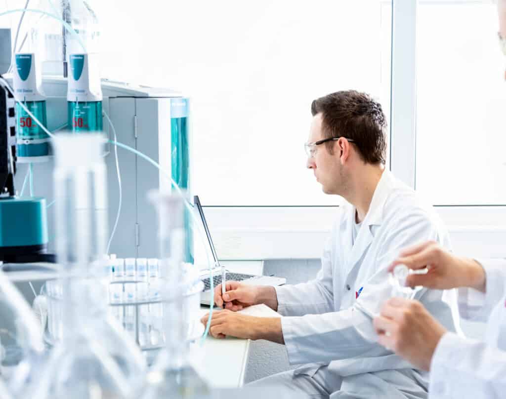 Das Prüflabor Suisselab AG in Zollikofen analysiert jährlich rund 500’000 Milchproben. Dabei untersucht es die Kuhmilch jedes Milchproduktionsbetriebes zweimal monatlich auf die öffentlich-rechtlich geforderten Kriterien wie Keimzahl, somatische Zellen und Hemmstoffe. Die Milch von Ziegen, Schafen und Büffeln prüft das Labor auf die gesetzlich vorgeschriebenen hygienischen Anforderungen (Keimzahl und Hemmstoffe). Dazu kommen weitere Untersuchungen wie Gehaltswerte (Fette und Eiweiss), Gefrierpunkt und Harnstoff. Die Resultate der Milchprüfung übermittelt Suisselab an die Datenbank Milch dbmilch.ch der TSM.